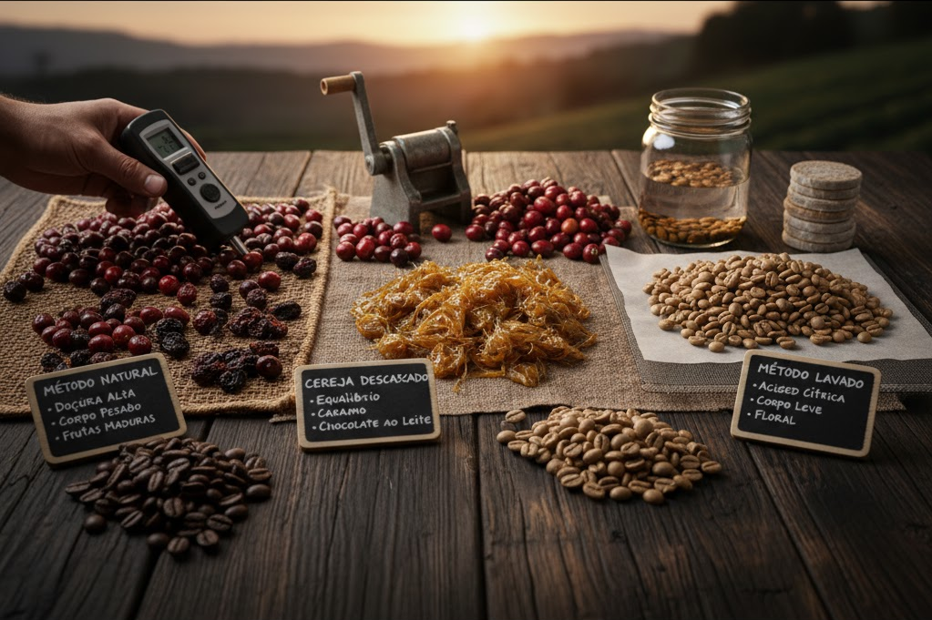 Vamos explorar os três principais métodos de processamento e como eles afetam o sabor do café de Minas Gerais: